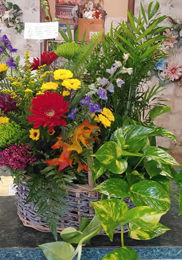 plants in a rustic style basket