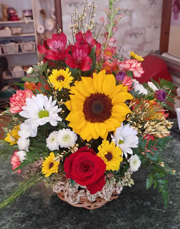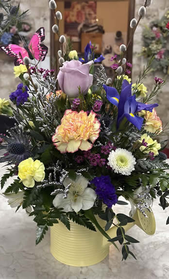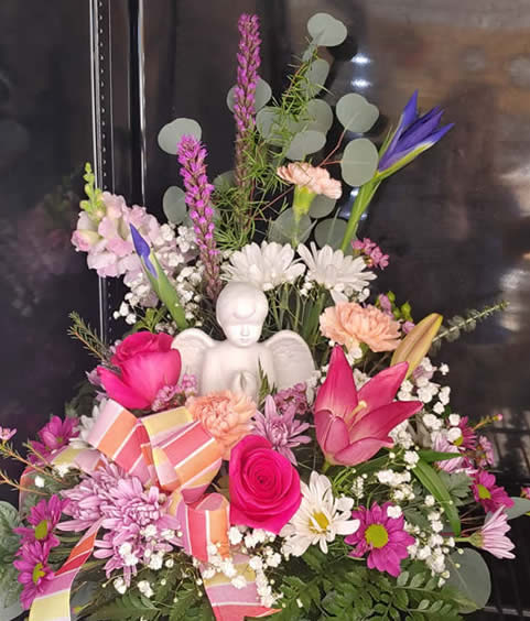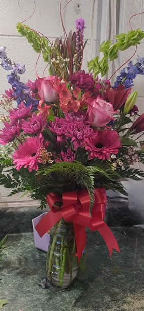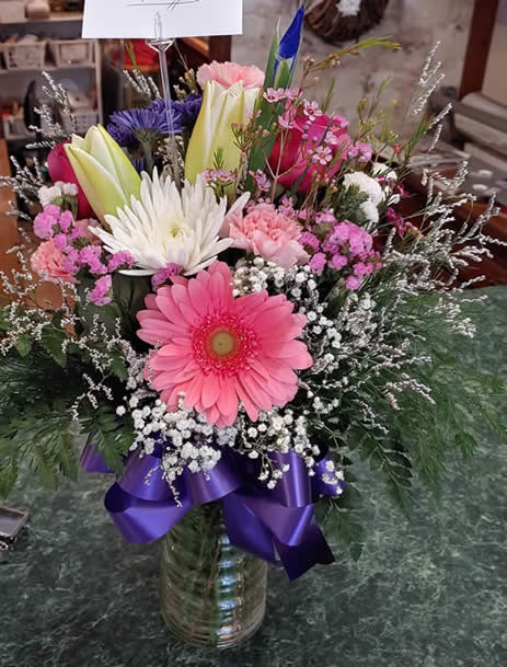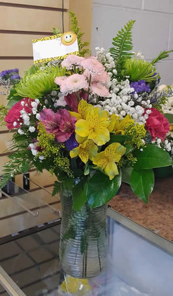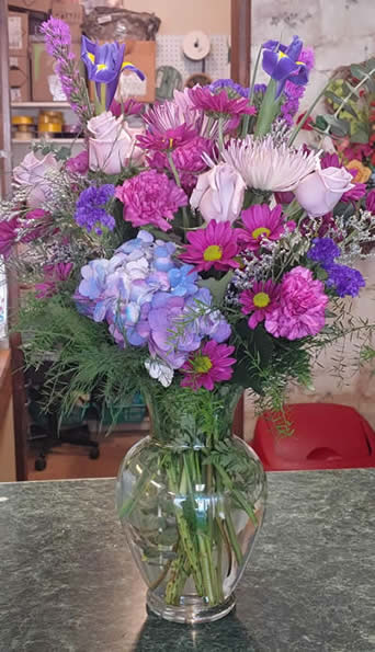 Carnations,fugi mums,alstroemaria, statis and Babies breath.